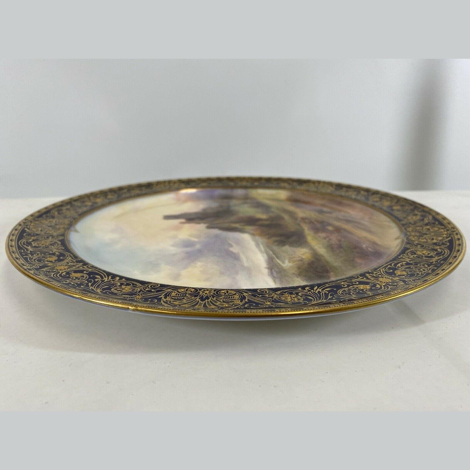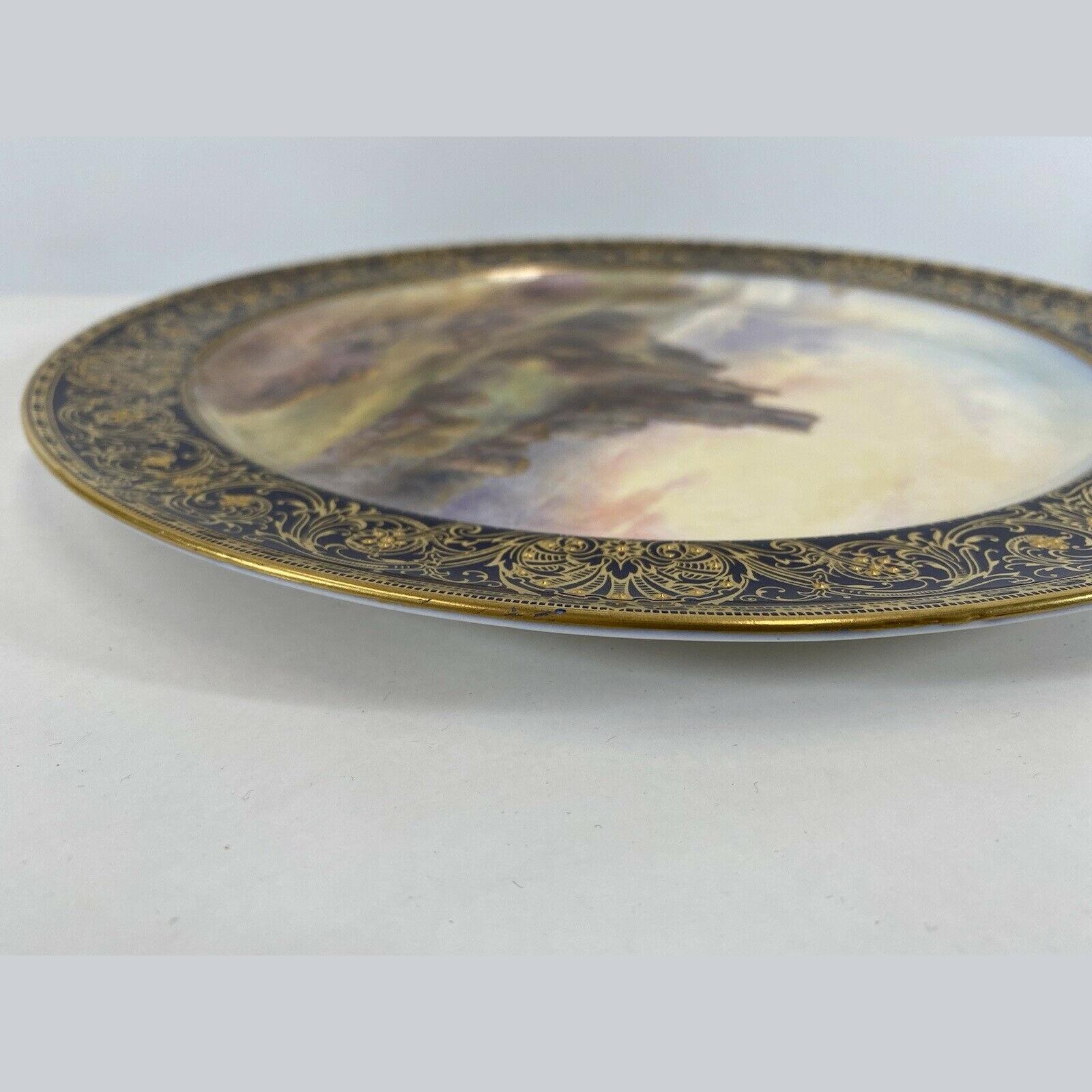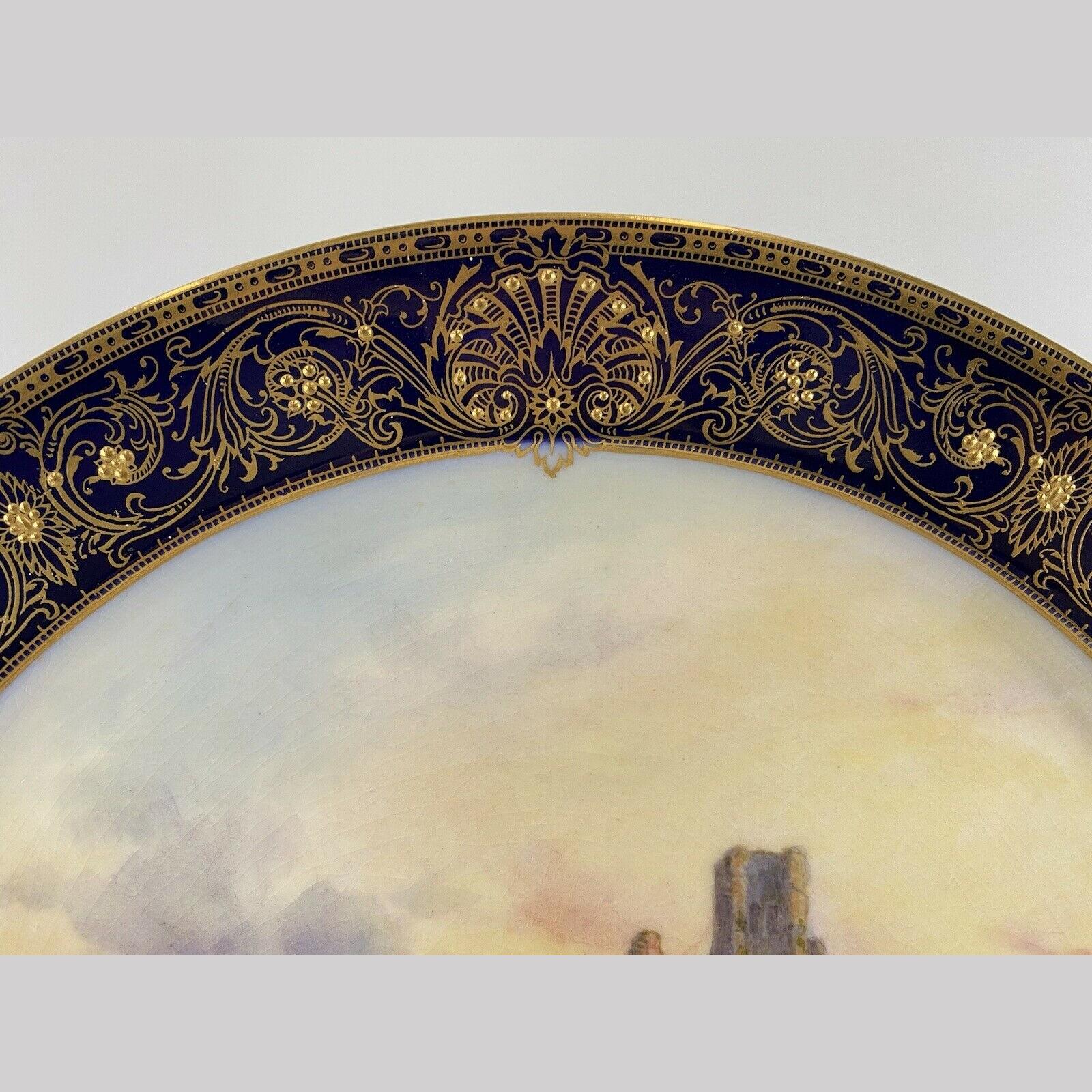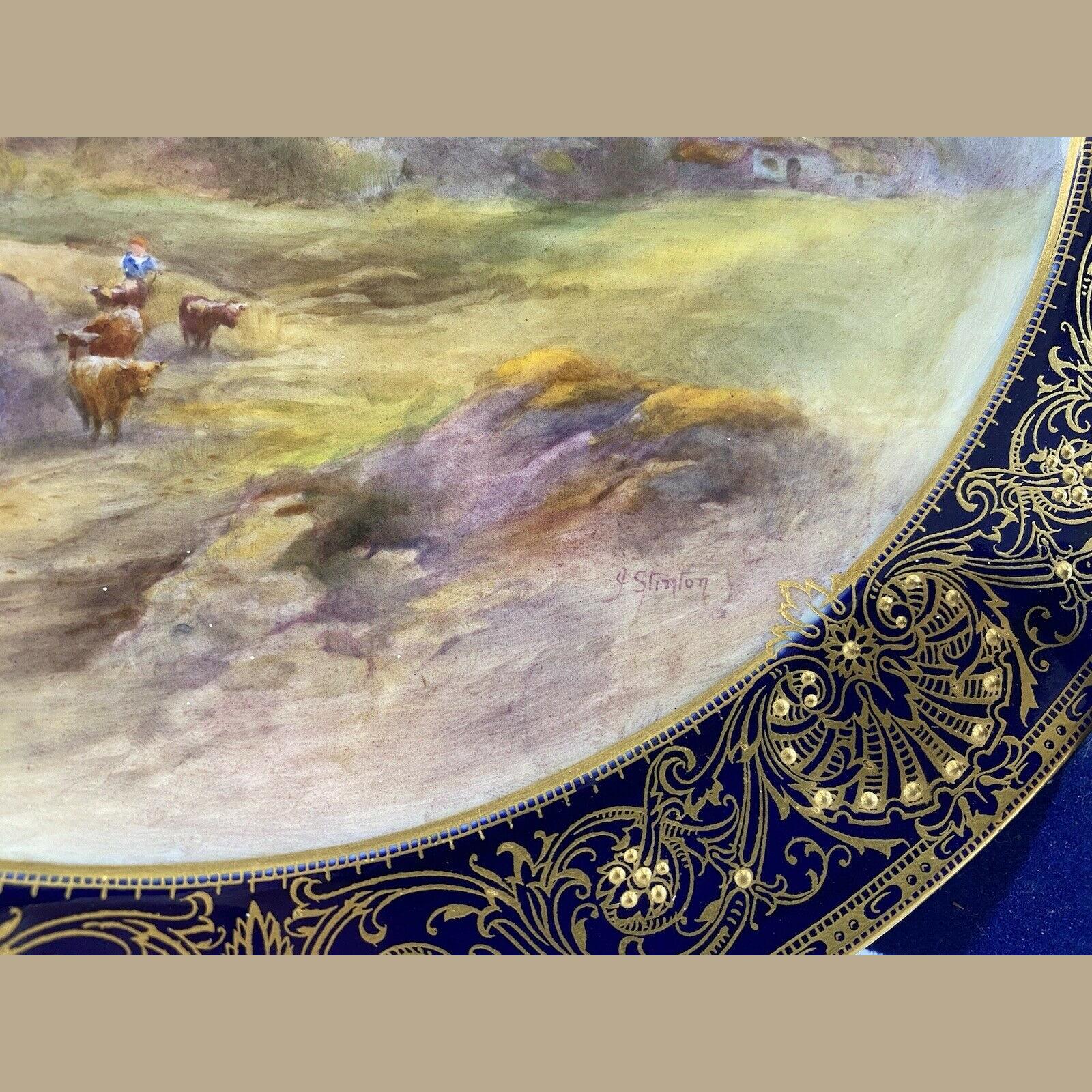John Stinton Junior is best known for his famous Highland cattle scenes but also produced many paintings of English cattle and was a fine painter of British castles which appear over his signature, on many Worcester cabinet plate centres.
